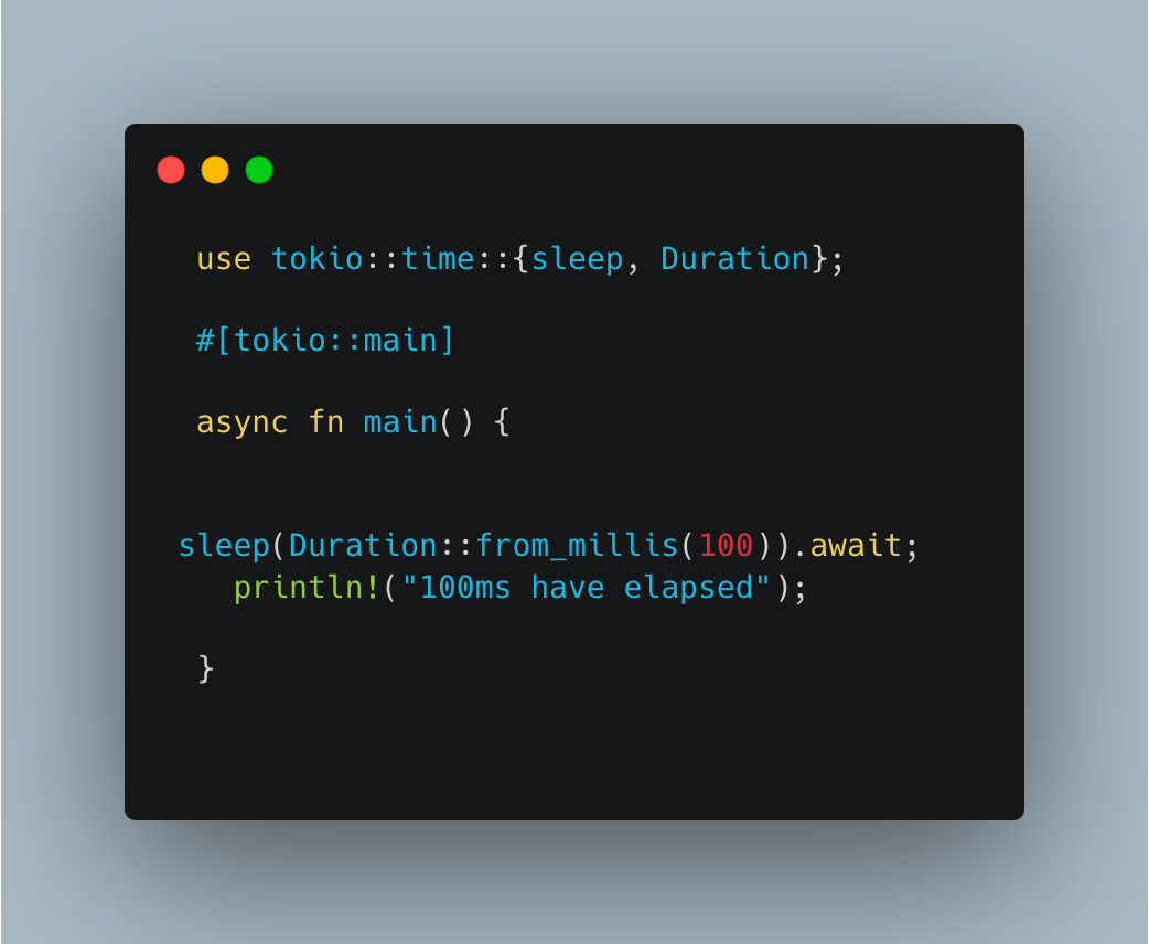 Timers: With Tokio, implementing timeouts or scheduling tasks to run after a delay is as simple as setting an alarm clock.